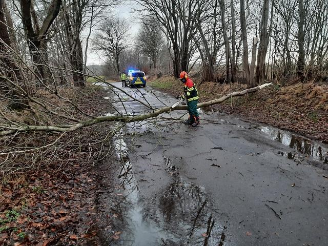 Ein Baum mit ca. 20cm Durchmesser lag quer über die Straße.