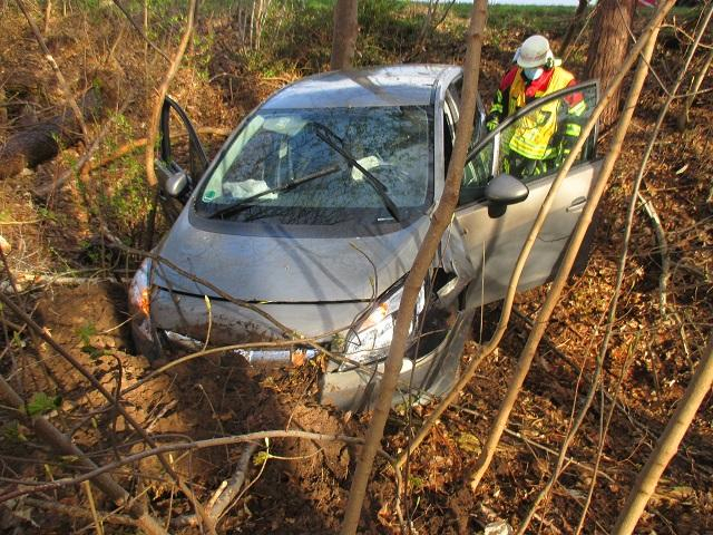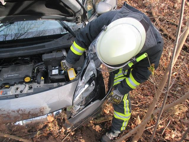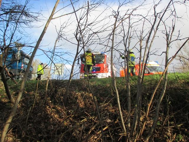 Ein PKW war die Böschung herunter gefahren, beim Eintreffen der Feuerwehr waren beide Insassen bei Rettungsdienst in Behandlung und Polizei war Vorort.